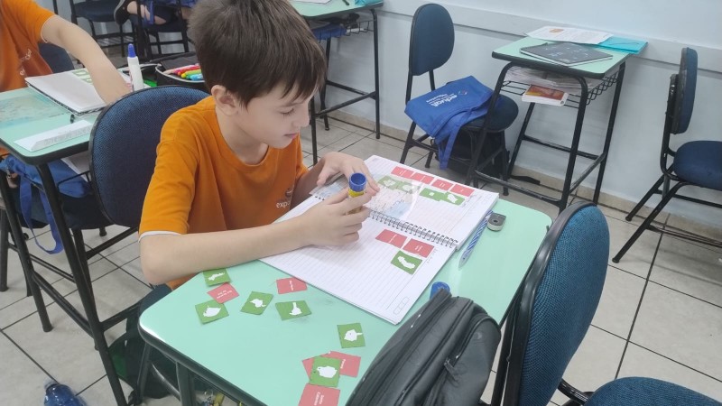 Para praticar conhecimentos da Geografia, ao estudar as capitais, desenhos no mapa e siglas, dos Estados do Brasil, bem como sua localização por regiões, os alunos usaram o jogo da memória e depois organizaram em seus cadernos.