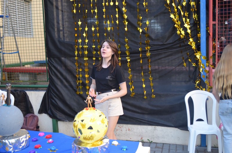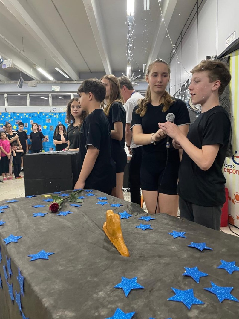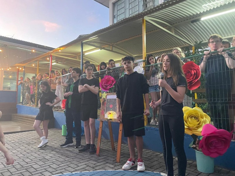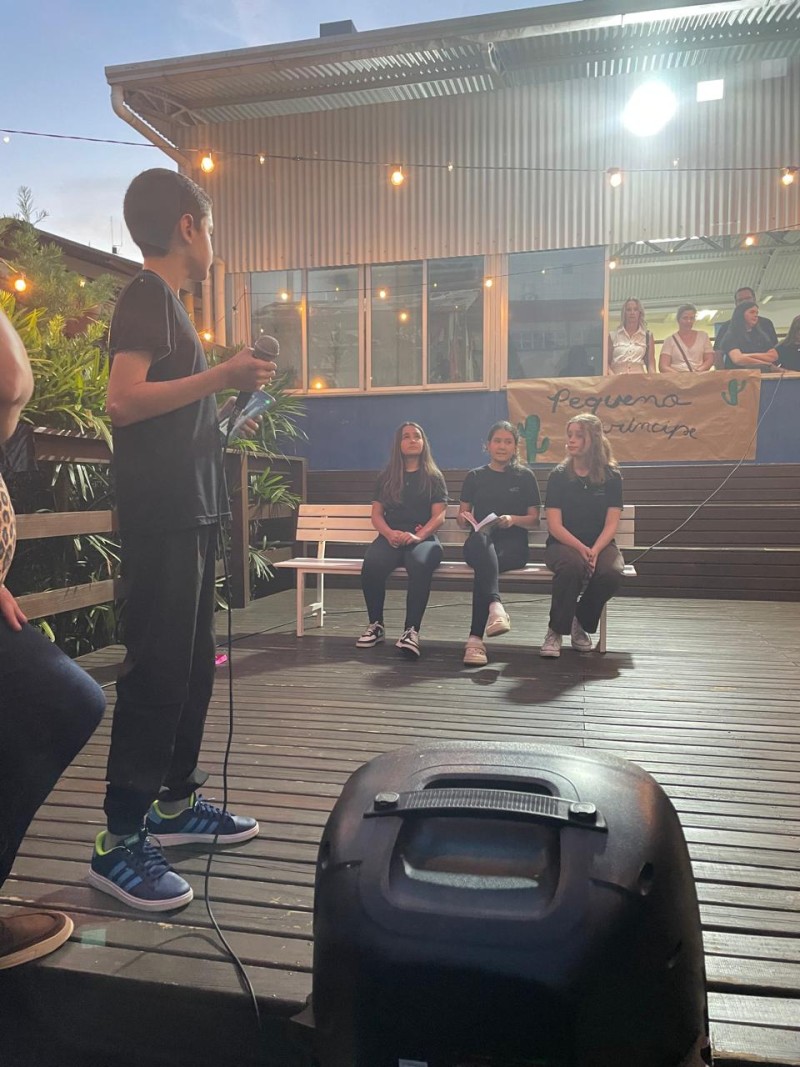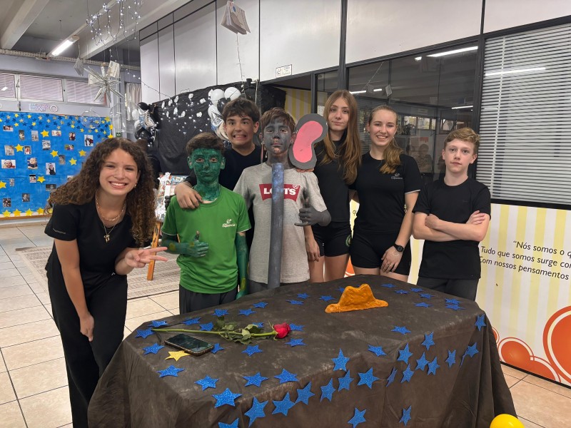 Atividade do projeto de leitura, intitulada de “As Constelações do Coração — Lições do Pequeno Príncipe”. Desenvolvida ao longo dos trimestres com os sétimos anos, unindo leitura literária, reflexão e produção criativa, sob a orientação da Professora de Língua Portuguesa Andréia. Os alunos estudaram os principais capítulos da obra, fizeram leitura em família (com gravação de vlogs opinativos), exploraram temas como amizade, empatia, responsabilidade afetiva, valores humanos, o olhar sensível para o outro e a importância de enxergar a essência das coisas — conceitos centrais da narrativa de Antoine de Saint-Exupéry. Durante o processo, realizaram atividades de interpretação textual, análises reflexivas, produção de textos autorais, desenhos temáticos, estudos sobre personagens, planetas e metáforas presentes no livro. Cada turma desenvolveu uma proposta específica, conectada às vivências do protagonista e aos aprendizados que ele desperta. A culminância aconteceu em uma noite especial, quando as famílias foram convidadas a apreciar apresentações poéticas, encenações, trilhas literárias e produções artísticas dos alunos. Foi um momento de integração entre escola, estudantes e comunidade, celebrando a leitura, a emoção e os valores trabalhados ao longo do projeto. Uma experiência significativa que transformou conhecimento em sensibilidade — e deixou em cada participante uma constelação de aprendizados.Uma experiência significativa que transformou conhecimento em sensibilidade — e deixou em cada participante uma constelação de aprendizados.