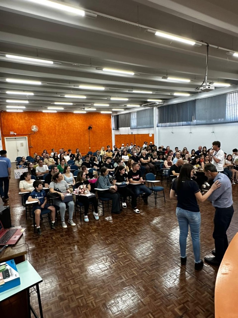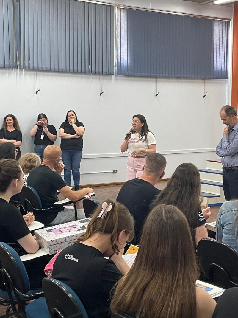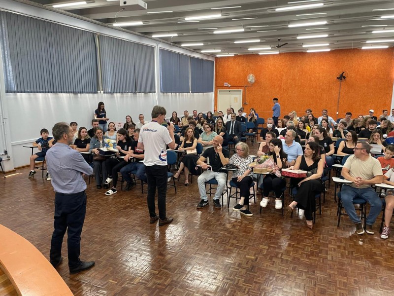 O último dia de aula do terceirão, quem veio buscar os estudantes na escola? Seus pais!!! Direção, Coordenação e a equipe de professores reuniram-se no auditórios com os alunos para finalizar as aulas do ano letivo, com o intuito de surpreendê-los com a presença dos pais, um momento carregado de muita emoção, porque a partir dele nasce a despedida da escola, finalização da Educação Básica, para enfrentar novos projetos de vida! O Exponencial, com sua equipe de profissionais, só tem a agradecer as famílias e estudantes pela participação. Em breve, vivenciará a tão esperada formatura do terceirão.