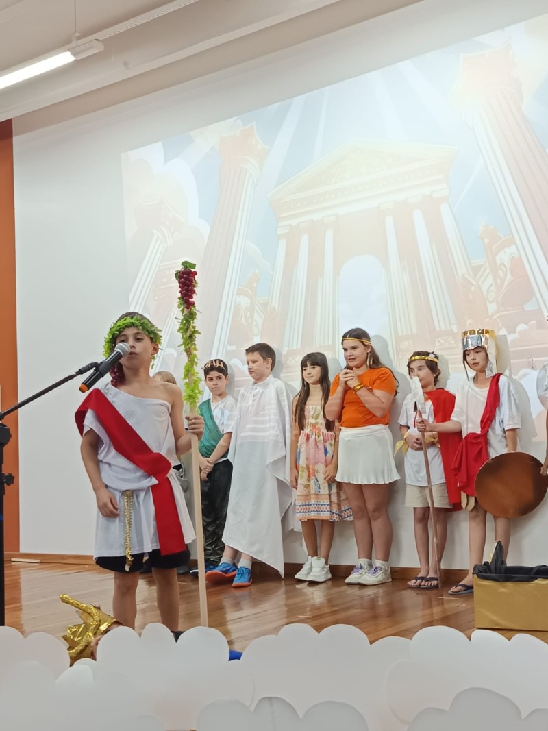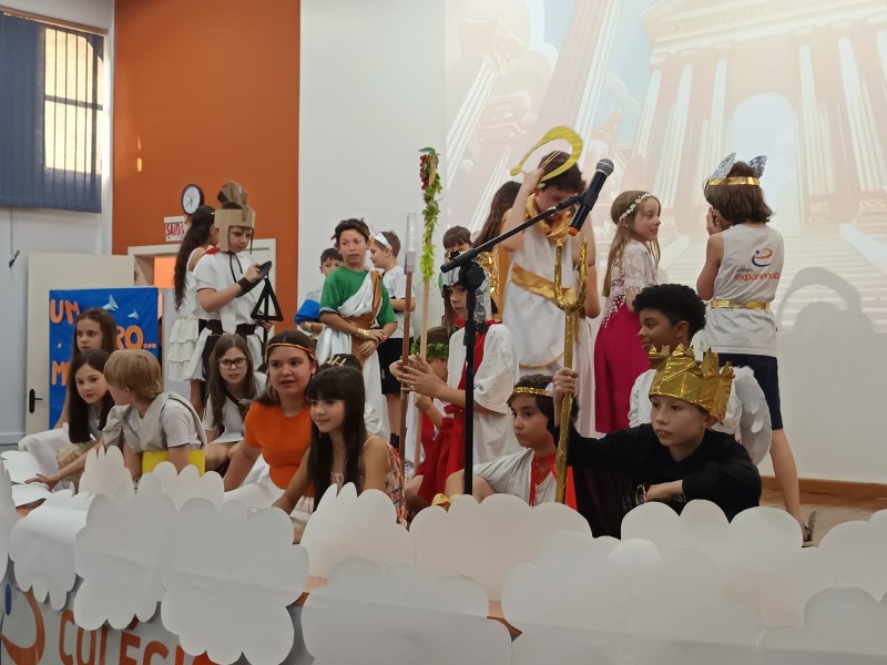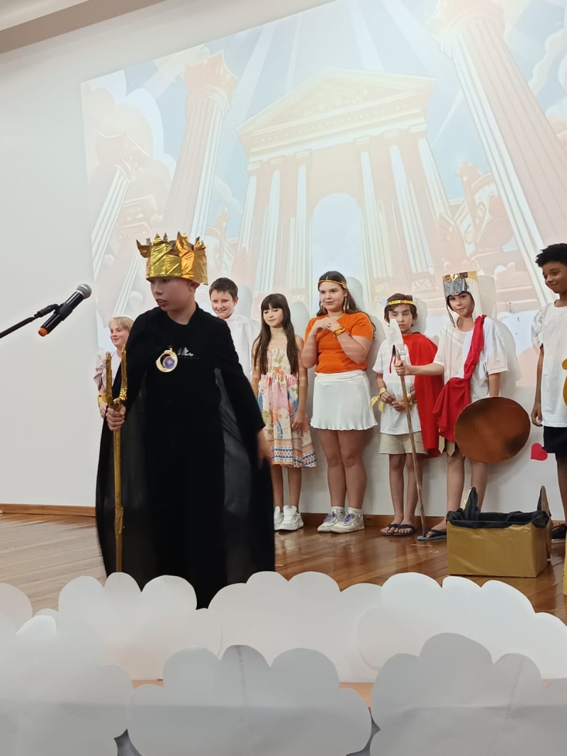 Com base em várias obras literárias infantis sobre mitologia grega, professoras conduziram as crianças dos 4º anos em produções para o palco, confecções de bonecos, exposição de trabalhos, tudo para tornar a Noite Literária um evento de sucesso, tal como foi! Além das apresentações das crianças, o Expo apresentou o vídeo de retrospectiva das atividades do ano das crianças, para encerrar mais um ano letivo com chave de ouro. Muita criatividade, risos, beleza das apresentações fizeram parte de mais um evento com a participação das famílias.