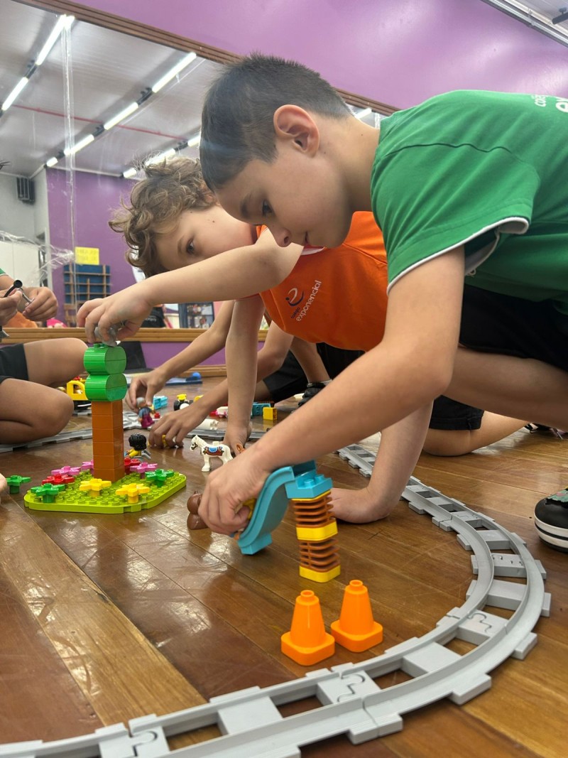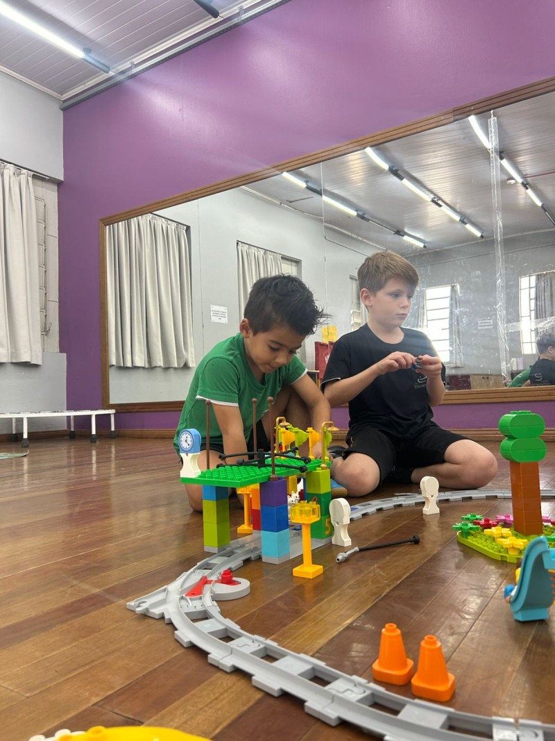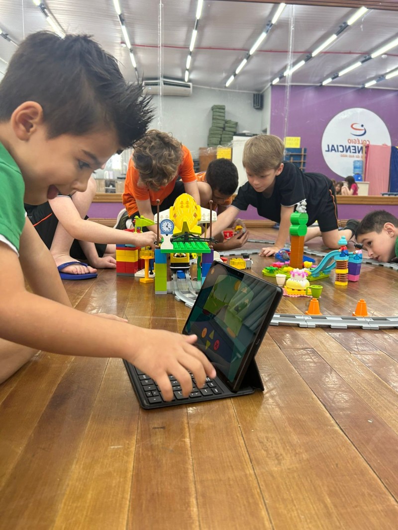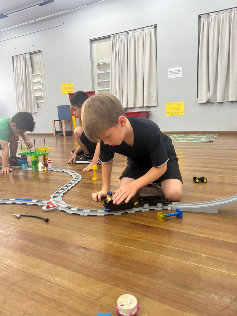 Oficina de Robótica Kids, do Tempo Integral - Professora Kassiana - nela os alunos iniciaram uma aventura muito especial com o personagem Stem. Tudo começou com um sonho, em que Stem realizava muitas viagens de trem, avião e barco. Nessa aventura, ele convidou as crianças para embarcarem com ele em uma viagem de trem .Durante a aula, os alunos conheceram um pouco sobre a “Macuca”, o primeiro trem da cidade de Blumenau. Também assistiram a um vídeo com curiosidades, aprendendo como esse trem era utilizado na época de sua construção. Depois desse momento de descoberta, os alunos foram desafiados a colocar a mão na massa! Construíram trilhos, um trenzinho e um posto de combustível. Nesse posto, utilizaram o bloco azul para criar sons e movimentos, simulando o momento em que o trem parava para abastecer e seguir viagem. A atividade envolveu muita criatividade, concentração e diversão!eçou com um sonho, em que Stem realizava muitas viagens de trem, avião e barco. Nessa aventura, ele convidou as crianças para embarcarem com ele em uma viagem de trem .Durante a aula, os alunos conheceram um pouco sobre a “Macuca”, o primeiro trem da cidade de Blumenau. Também assistiram a um vídeo com curiosidades, aprendendo como esse trem era utilizado na época de sua construção. Depois desse momento de descoberta, os alunos foram desafiados a colocar a mão na massa! Construíram trilhos, um trenzinho e um posto de combustível. Nesse posto, utilizaram o bloco azul para criar sons e movimentos, simulando o momento em que o trem parava para abastecer e seguir viagem. A atividade envolveu muita criatividade, concentração e diversão!