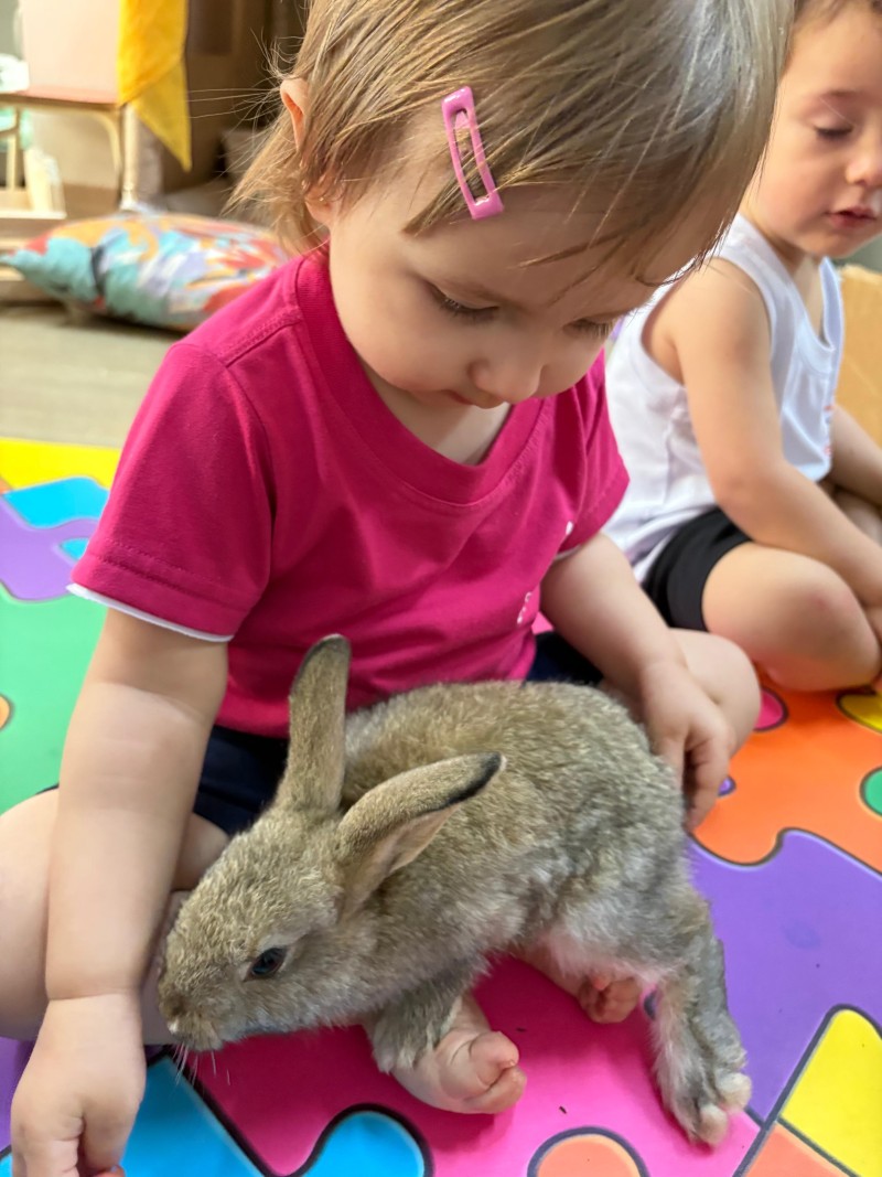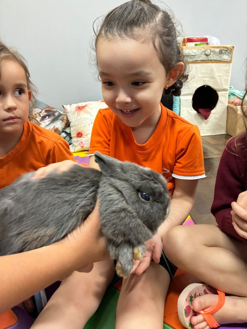 Em 02.04.26 véspera da Páscoa um visitante mais que especial esteve com todas turmas da Educação Infantil - o coelhinho! O coelhinho despertou nas crianças um mundo de imaginação e encantamento, onde cada detalhe se transformou em descoberta e alegria. Entre risadas, brincadeiras e olhos curiosos, elas viveram a magia de acreditar no invisível e sentir o carinho nos pequenos gestos. O coelhinho, mais do que um símbolo, representou a doçura da infância, a renovação da esperança e a beleza de celebrar momentos simples que ficam guardados no coração.