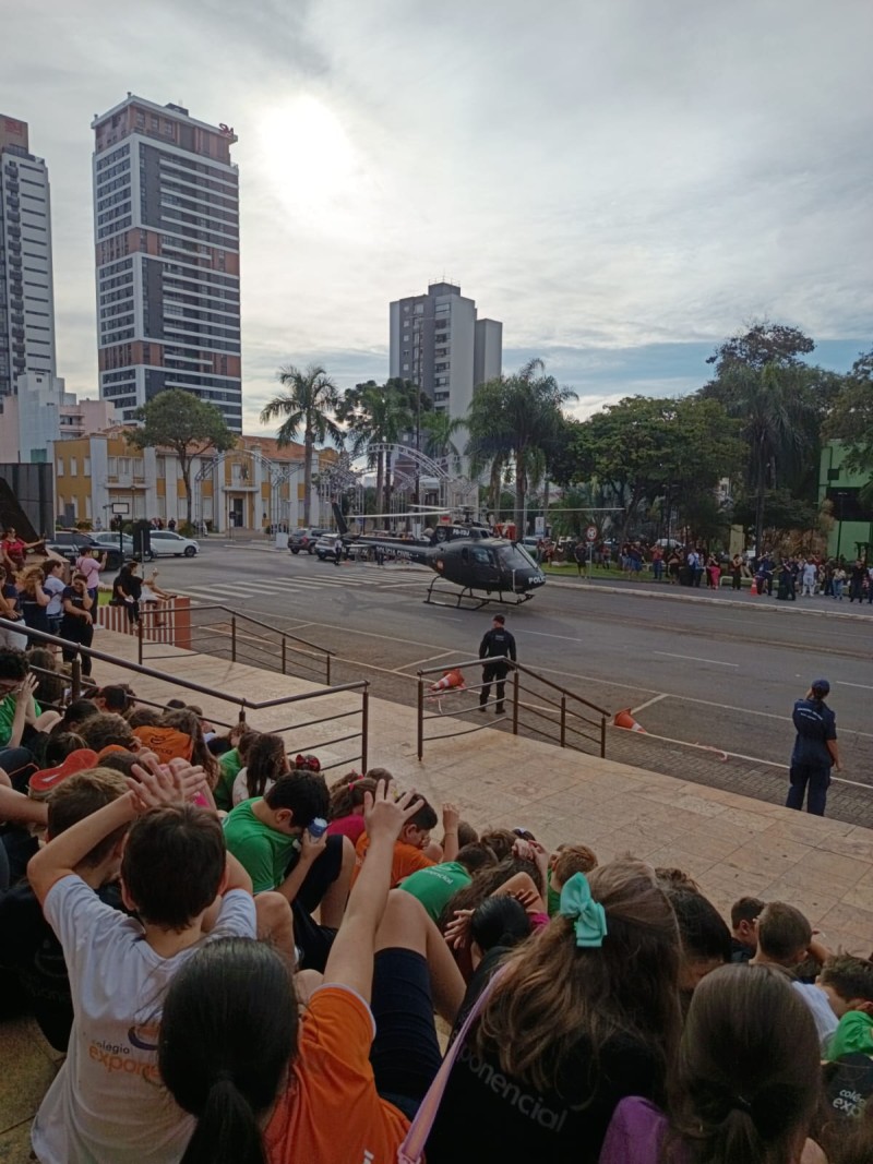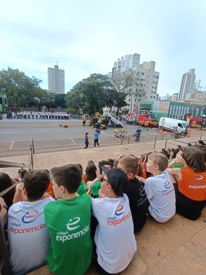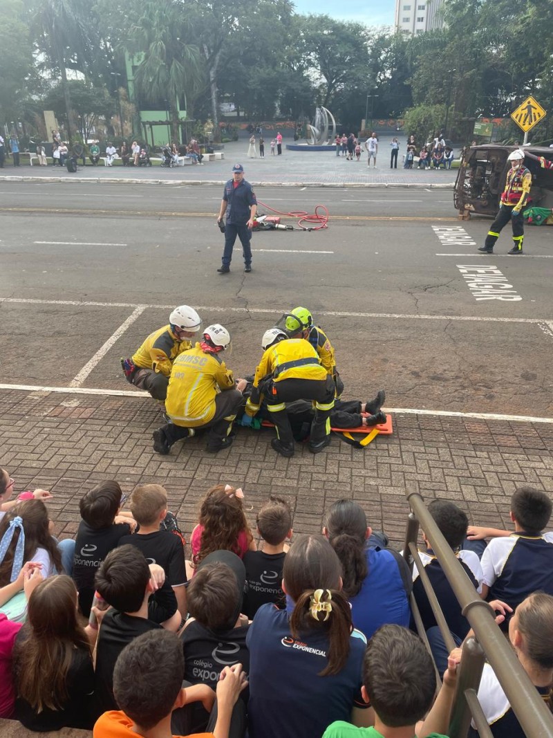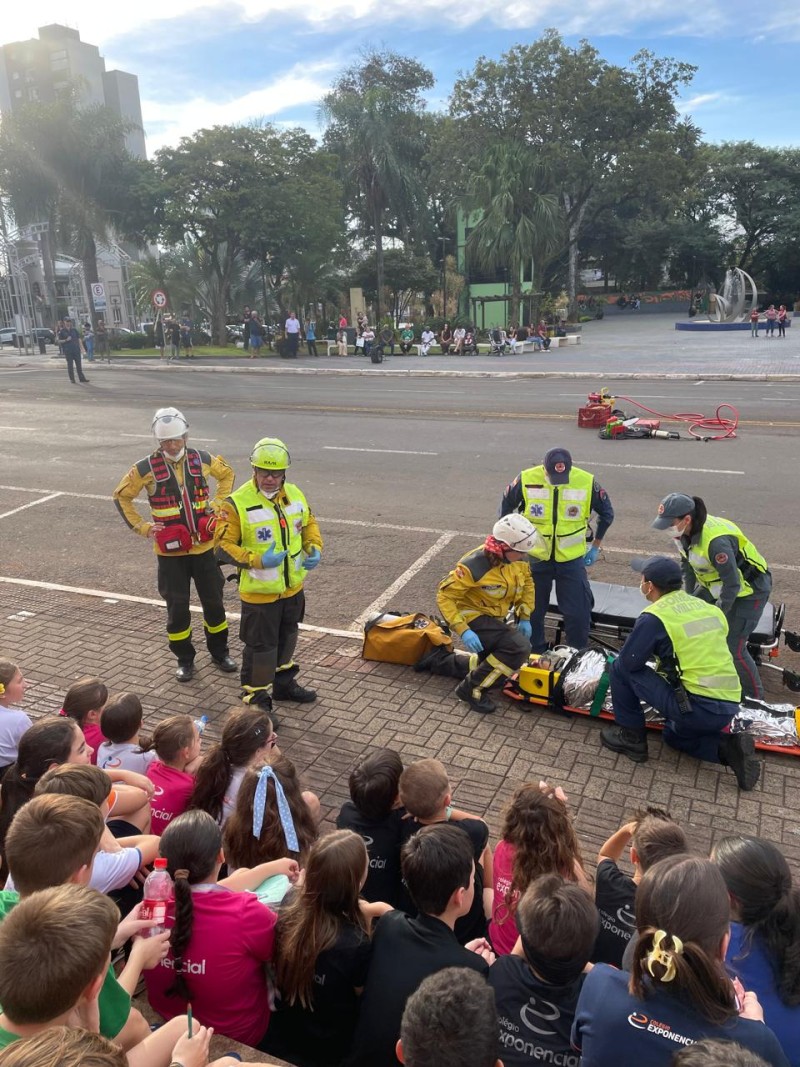 Em 14.04.26 alunos dos 4º e 5º anos do EF1 participaram da Simulação de Resgate Veicular na Praça Coronel Bertaso, no centro de Chapecó. Essa ação aconteceu em comemoração aos 61 anos do Corpo de Bombeiros de Santa Catarina (Chapecó). Houve a participação dos bombeiros, SAMU, helicóptero, entre outros profissionais envolvidos no resgate. 🚁👨🚒 Além de ser uma experiência muito interessante a atividade teve como objetivo aproximar os estudantes da realidade dos serviços de emergência, promovendo a conscientização sobre segurança no trânsito, a valorização da vida e o respeito ao trabalho desses profissionais. Foi um momento muito rico de aprendizagem, despertando a curiosidade, o senso de responsabilidade e o cuidado com o próximo. Educação para o trânsito faz parte da proposta pedagógica do EXPO. Quem aí também gostaria de ter tido uma aula prática assim na época da escola?