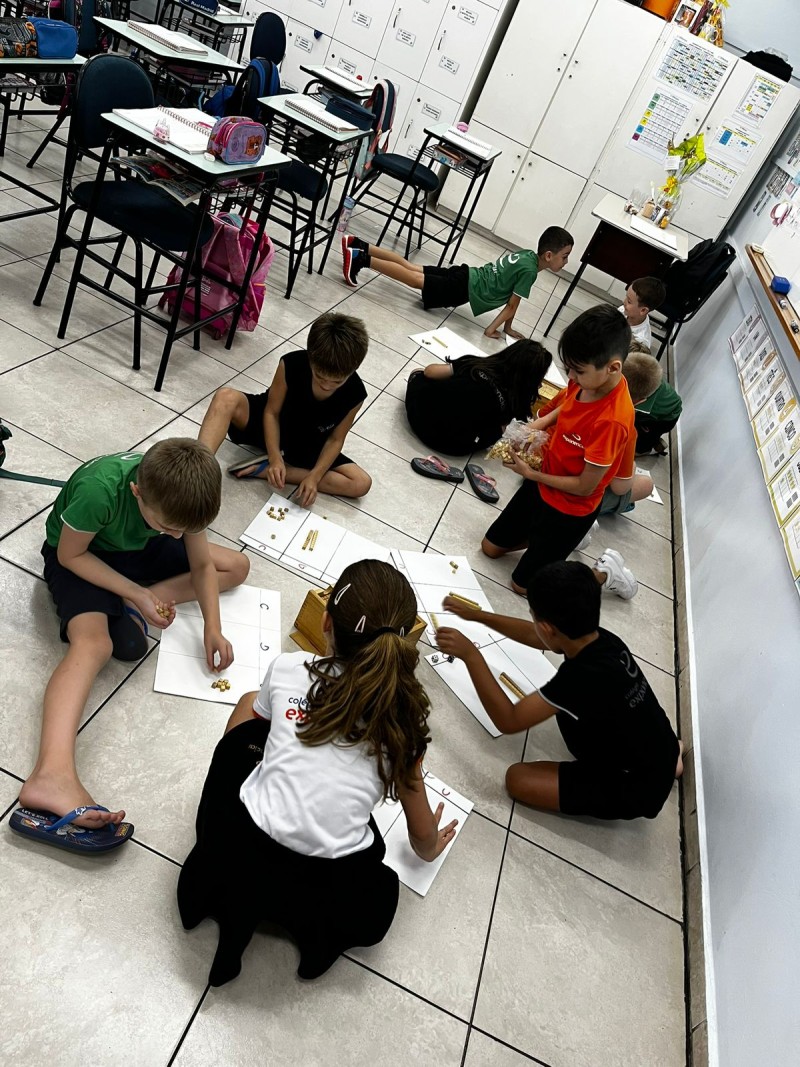 2º ano - Turma 23 - Professora Carol - em, o jogo “Nunca 10”. Explorar os conceitos de unidade, dezena e centena, jogando com o material dourado, favorece a compreensão de que a contagem pode ser organizada por meio de agrupamentos, evidenciando as relações de valor no sistema de numeração. O jogo ensina que 10 unidades formam uma dezena e 10 dezenas formam uma centena, reforçando a base dez de forma prática. O jogo NUNCA DEZ estimula competências como atenção, concentração, raciocínio lógico e memorização. A ludicidade reduz o medo da matemática, tornando o aprendizado mais leve, interativo e desafiador.