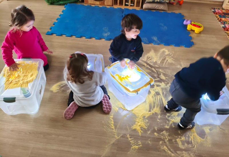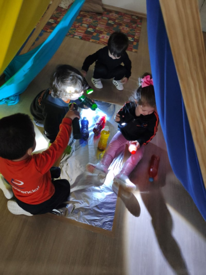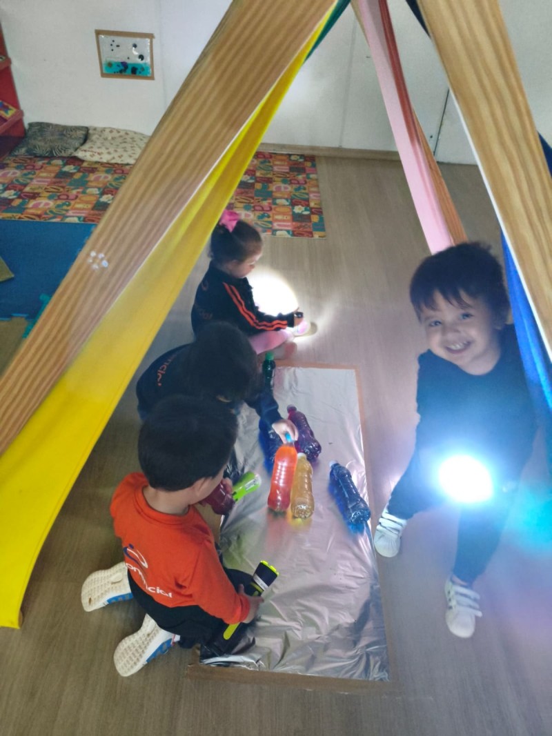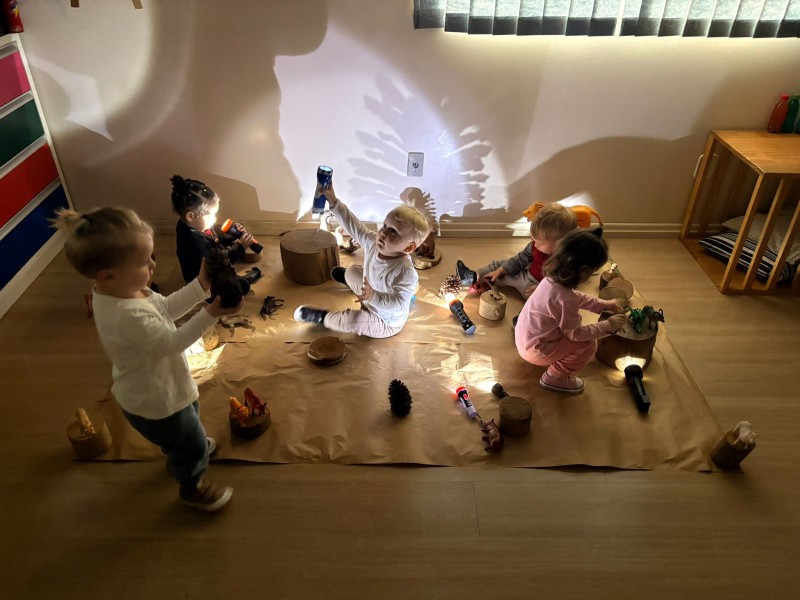 Os bebês das turmas do Infantil 1 em investigação sobre a luz e a sombra. São muitas descobertas, sorrisos e brincadeiras nesse potente percurso investigativo!
