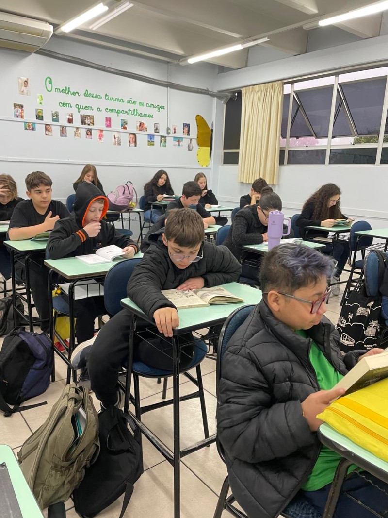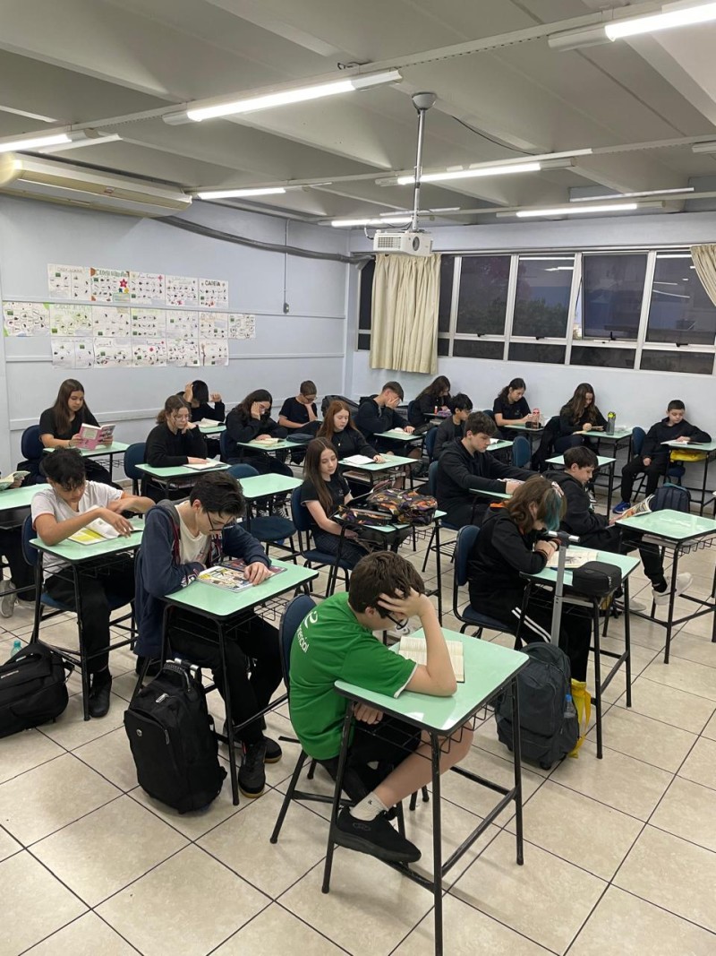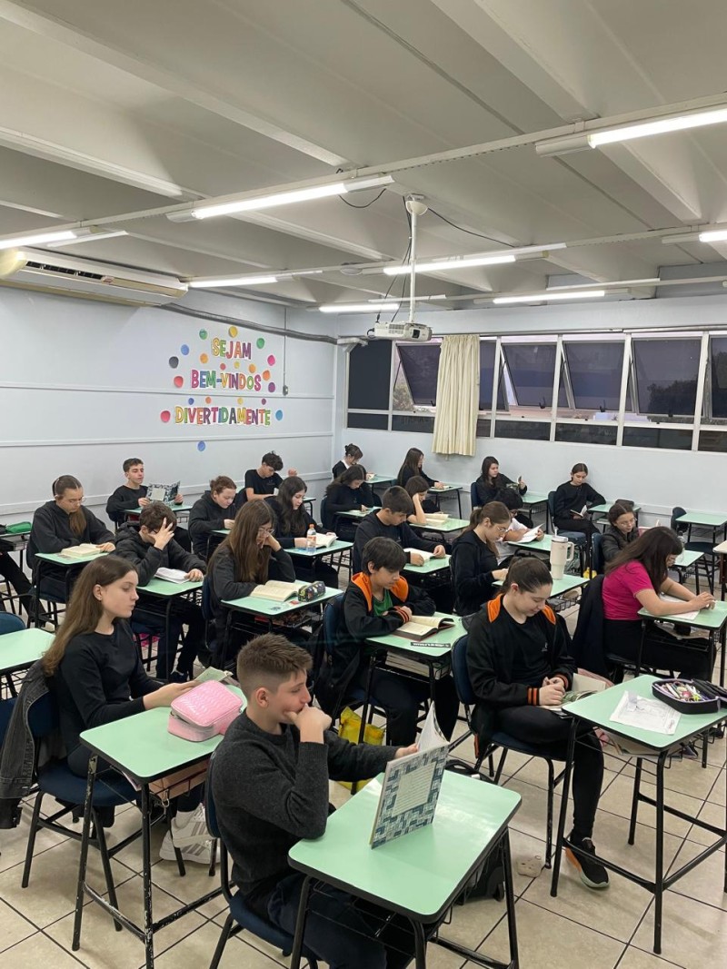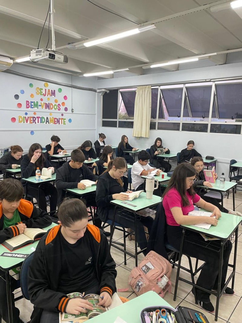 O XXIV Projeto da Leitura - 2025 - Um livro muito mais que palavras! E uma das fases, a Fase da Parada Literária, que acontece ao longo do ano. Ensino fundamental 2 e Ensino Médio na 5ª Parada Literária de 2025, no mês de agosto, em cada mês deste ano, acontece um momento especial de leitura com todos os alunos da escola, o intuído é auxiliar na construção do hábito da leitura.