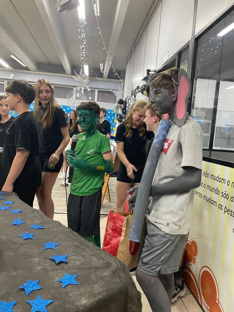 Atividade do projeto de leitura, intitulada de “As Constelações do Coração — Lições do Pequeno Príncipe”. Desenvolvida ao longo dos trimestres com os sétimos anos, unindo leitura literária, reflexão e produção criativa, sob a orientação da Professora de Língua Portuguesa Andréia. Os alunos estudaram os principais capítulos da obra, fizeram leitura em família (com gravação de vlogs opinativos), exploraram temas como amizade, empatia, responsabilidade afetiva, valores humanos, o olhar sensível para o outro e a importância de enxergar a essência das coisas — conceitos centrais da narrativa de Antoine de Saint-Exupéry. Durante o processo, realizaram atividades de interpretação textual, análises reflexivas, produção de textos autorais, desenhos temáticos, estudos sobre personagens, planetas e metáforas presentes no livro. Cada turma desenvolveu uma proposta específica, conectada às vivências do protagonista e aos aprendizados que ele desperta. A culminância aconteceu em uma noite especial, quando as famílias foram convidadas a apreciar apresentações poéticas, encenações, trilhas literárias e produções artísticas dos alunos. Foi um momento de integração entre escola, estudantes e comunidade, celebrando a leitura, a emoção e os valores trabalhados ao longo do projeto. Uma experiência significativa que transformou conhecimento em sensibilidade — e deixou em cada participante uma constelação de aprendizados.Uma experiência significativa que transformou conhecimento em sensibilidade — e deixou em cada participante uma constelação de aprendizados.