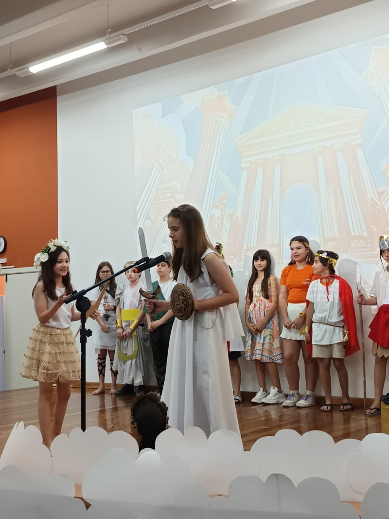 Com base em várias obras literárias infantis sobre mitologia grega, professoras conduziram as crianças dos 4º anos em produções para o palco, confecções de bonecos, exposição de trabalhos, tudo para tornar a Noite Literária um evento de sucesso, tal como foi! Além das apresentações das crianças, o Expo apresentou o vídeo de retrospectiva das atividades do ano das crianças, para encerrar mais um ano letivo com chave de ouro. Muita criatividade, risos, beleza das apresentações fizeram parte de mais um evento com a participação das famílias.