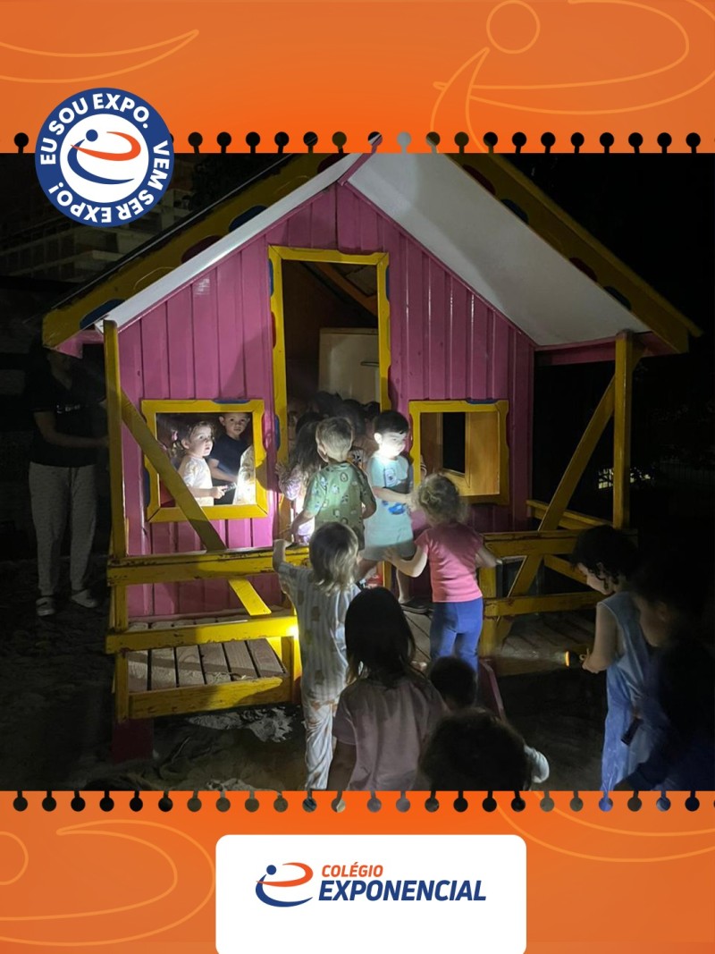 Em 28/11/25 aconteceu a Noite do Pijama, para a Educação Infantil, momento de encerramento com as crianças do ano letivo de 2025. As crianças pequenas, de 1 ano estiveram com as professoras Daiana e Bruna. Foi uma noite mágica na escola, com brincadeiras molhadas, contação de histórias, caça ao tesouro, oficina de neon, baladinha e um jantar delicioso! E para a Educação Infantil 2, 3, 4 e 5, As crianças tiveram brincadeiras molhadas, oficina de neon, torta na cara, baladinha e desfile do pijama, um jantar delicioso, luau ao redor da fogueira com marshmallow assado. A Noite do Pijama no EXPO é sempre muito esperada pelas crianças, um momento memorável!