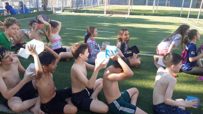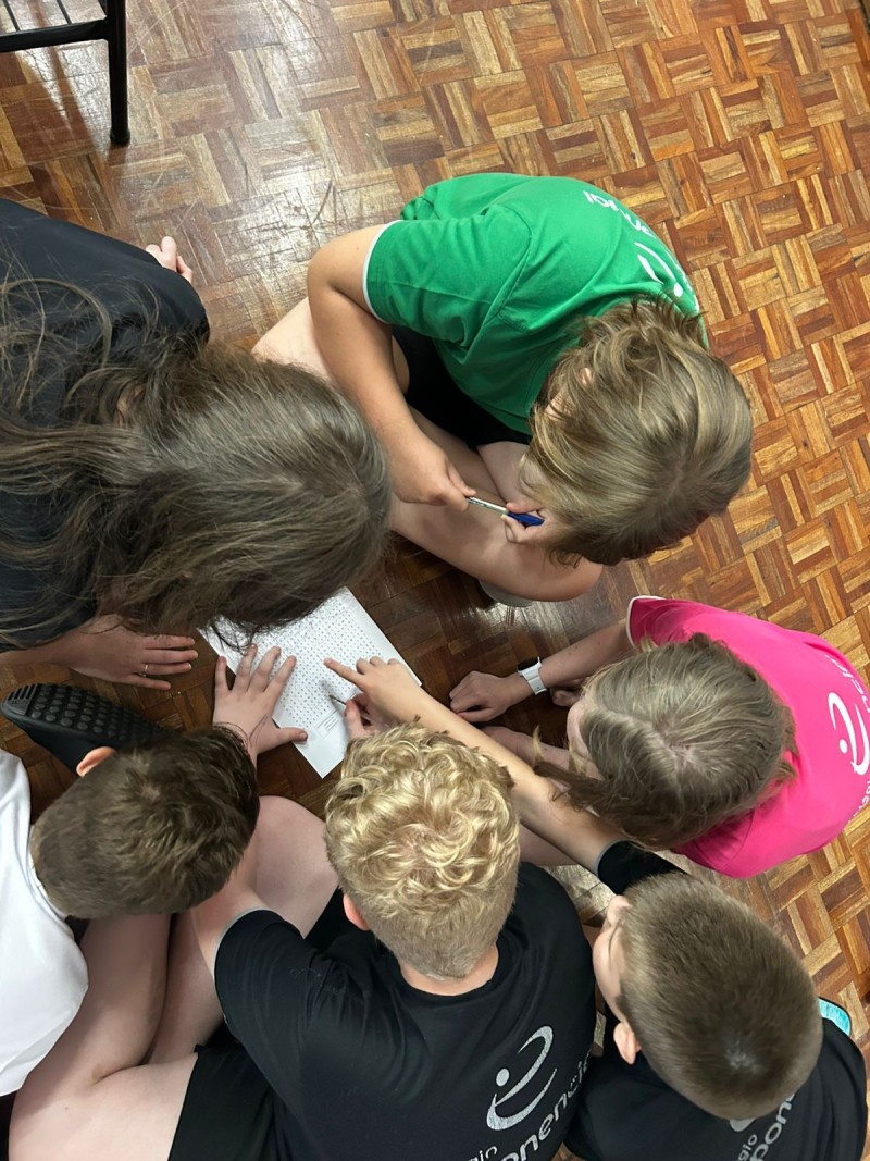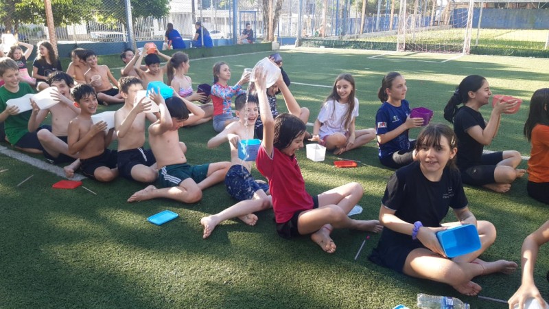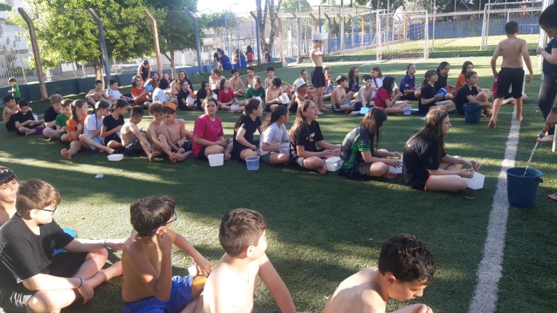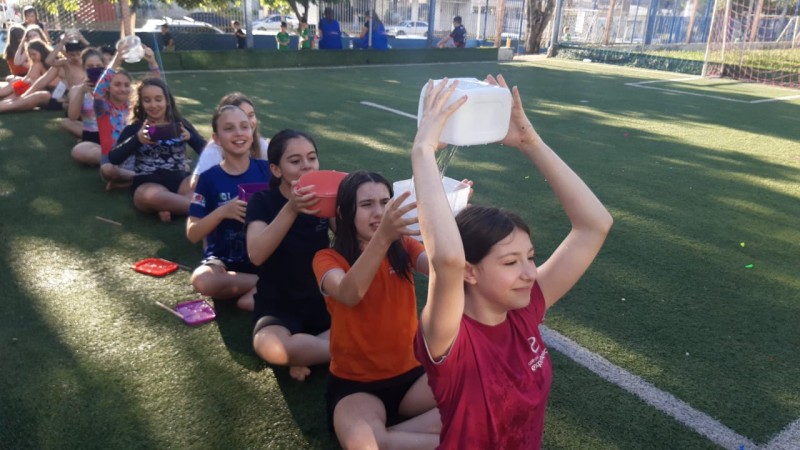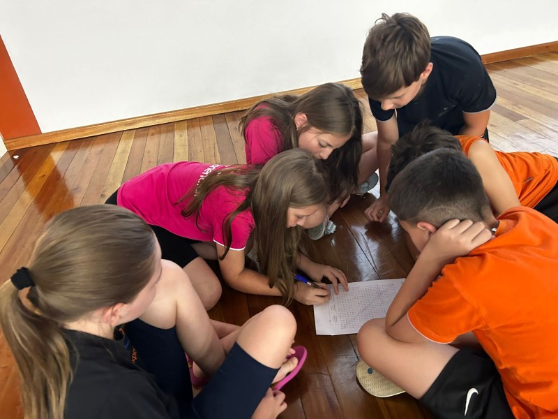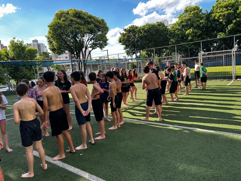 Professores dos 6º anos - Ensino Fundamental 2 em apresentação para os 5º anos com o tema - 6º ano, lá vou eu! Eles divulgaram aos estudantes como será o EF2, principalmente o 6º ano em 2026. O objetivo principal é deixar os alunos mais seguros para frequentar o novo nível de ensino, o Ensino Fundamental 2. Foi um momento muito bacana de diálogos, apresentações, brincadeiras... e depois os 5º anos participaram de atividades recreativas e de interação entre colegas como encerramento do ano letivo.