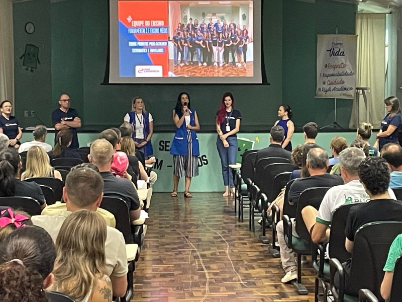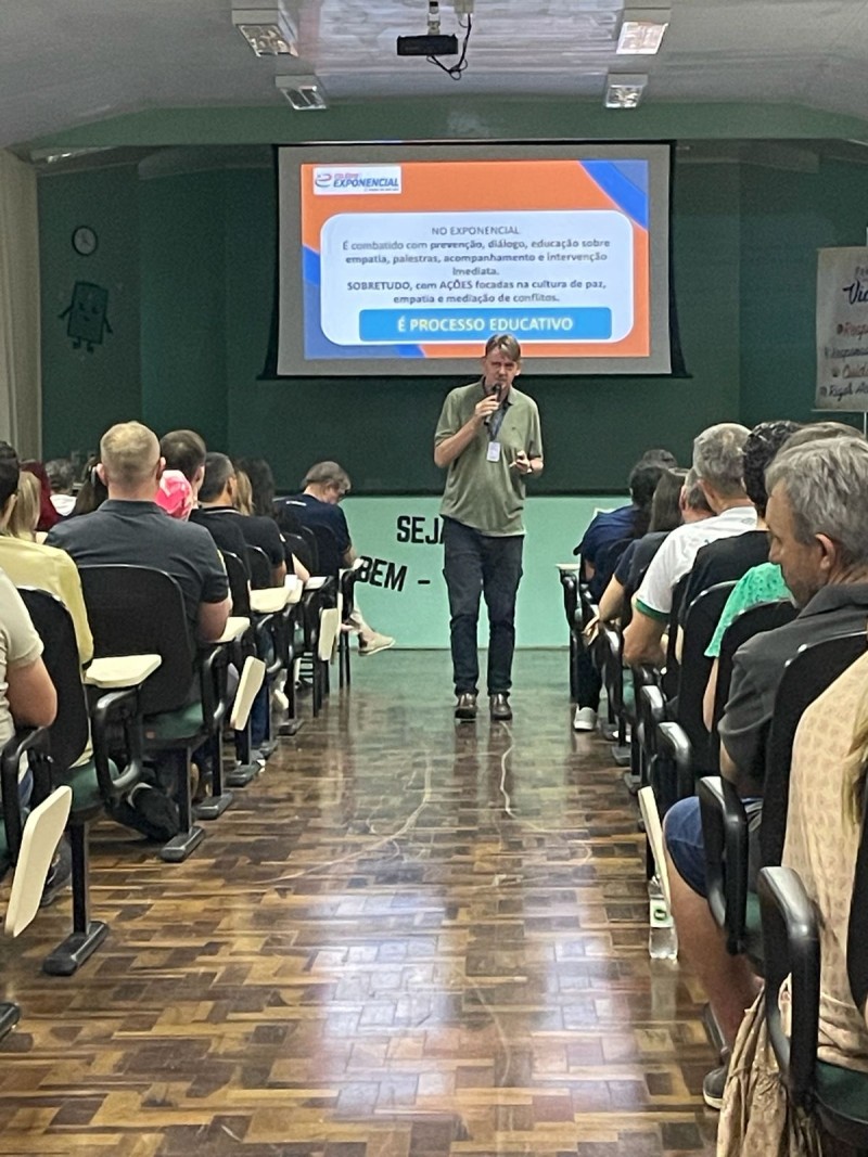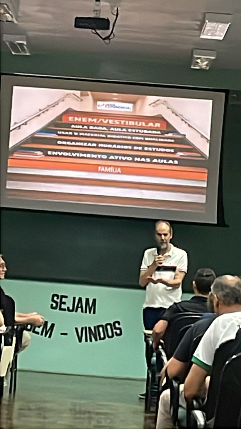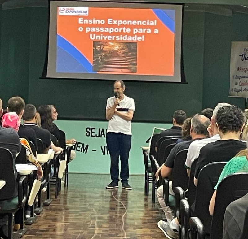 Em 12.02.26 o Colégio Exponencial acolheu os pais dos estudantes do Ensino Médio para um encontro formativo e de diálogo. Durante a reunião, foram abordados temas de grande relevância para a formação integral dos alunos, como o uso de telas e seus impactos, bullying, racismo e a importância dos valores para a vida. Também foram apresentadas orientações sobre a organização da rotina de estudos, o uso adequado do material didático e estratégias para a conquista do “passaporte” para o Enem e os vestibulares. A expressiva participação das famílias fortaleceu ainda mais a parceria entre escola e família, reafirmando o compromisso conjunto com o desenvolvimento acadêmico e humano dos estudantes.