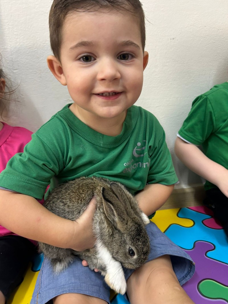 Em 02.04.26 véspera da Páscoa um visitante mais que especial esteve com todas turmas da Educação Infantil - o coelhinho! O coelhinho despertou nas crianças um mundo de imaginação e encantamento, onde cada detalhe se transformou em descoberta e alegria. Entre risadas, brincadeiras e olhos curiosos, elas viveram a magia de acreditar no invisível e sentir o carinho nos pequenos gestos. O coelhinho, mais do que um símbolo, representou a doçura da infância, a renovação da esperança e a beleza de celebrar momentos simples que ficam guardados no coração.