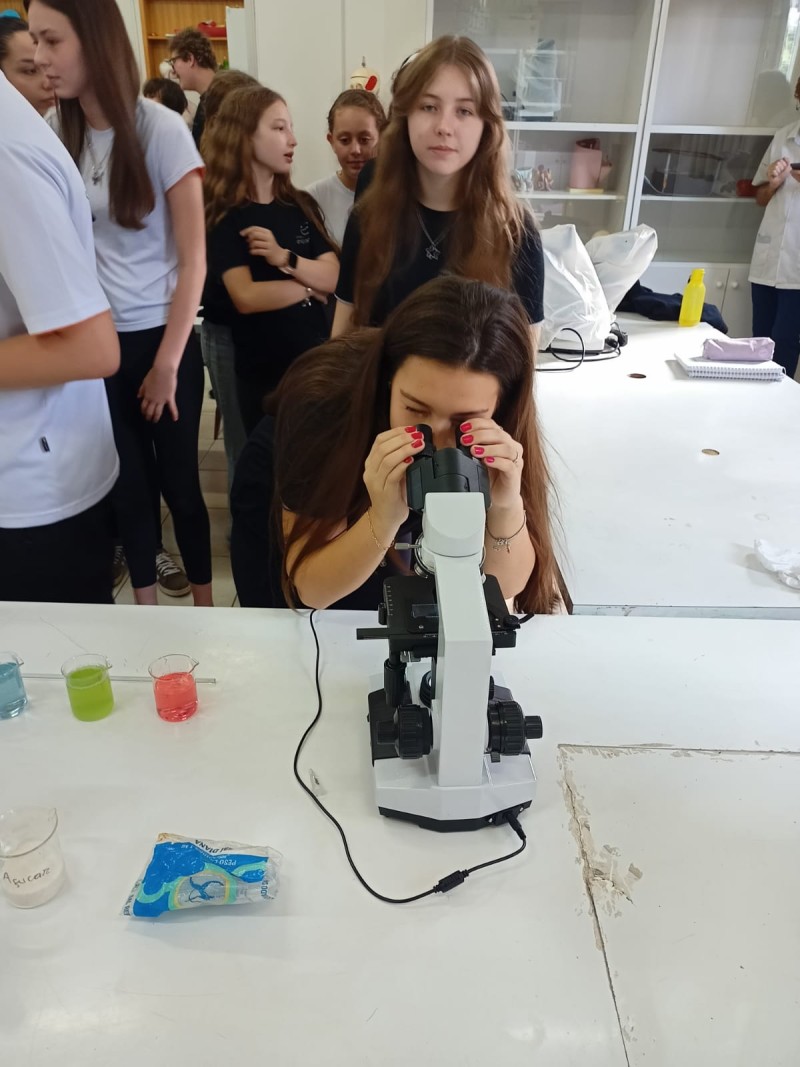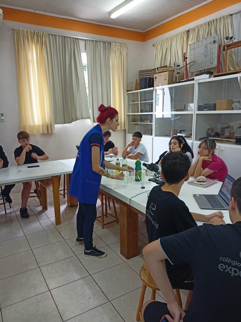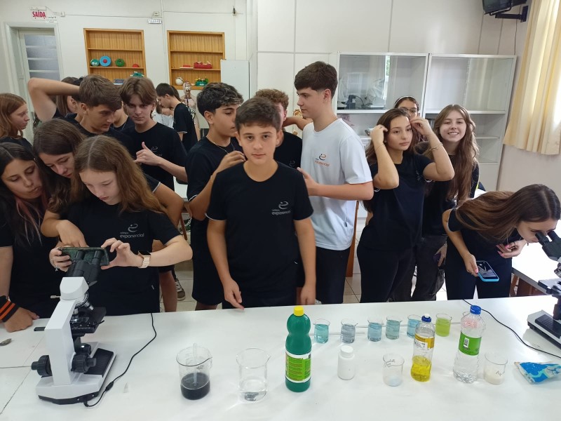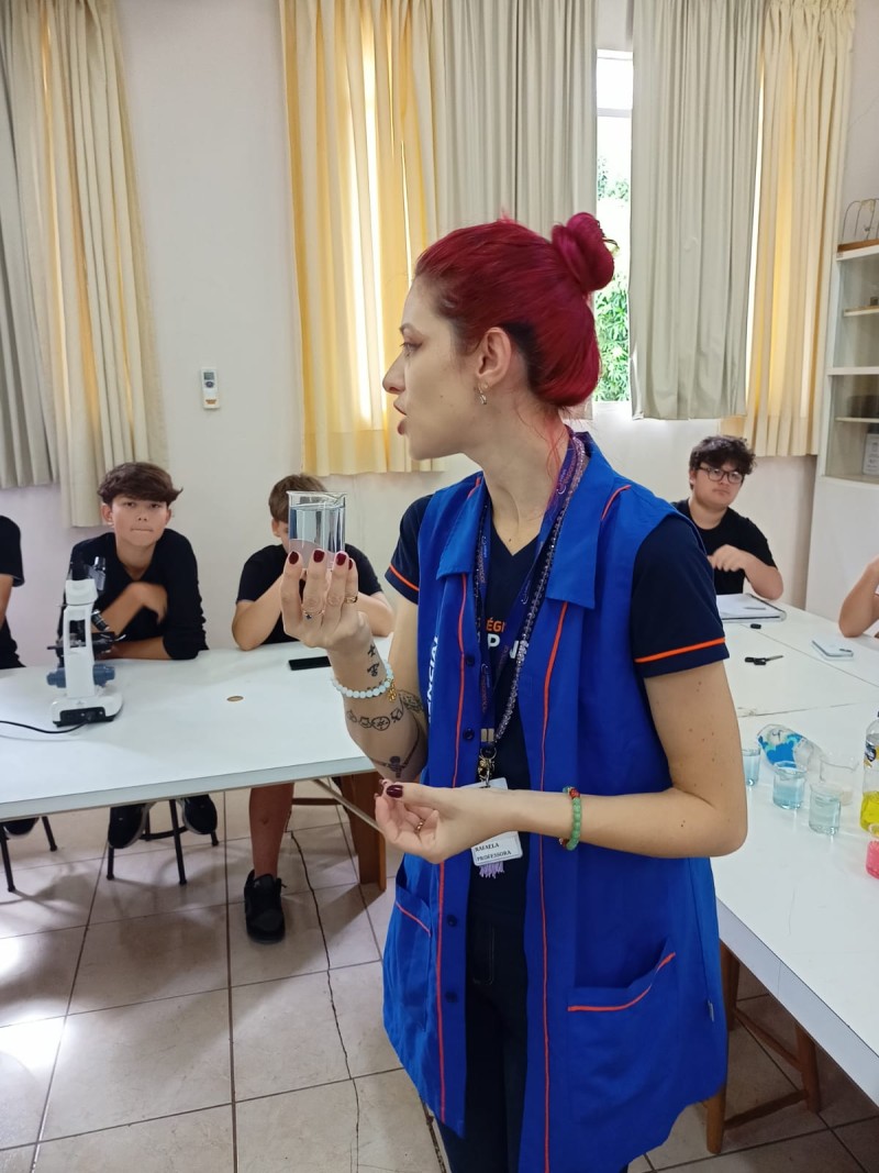 Aula no Laboratório de Ciências com os 9º anos (091 e 092) sob a orientação da Profª Rafaela. Prática de indicadores de pH, e observação da transformação física de substâncias (fármacos para diabetes) no microscópio🔬🧪