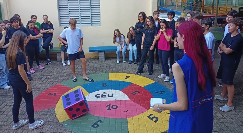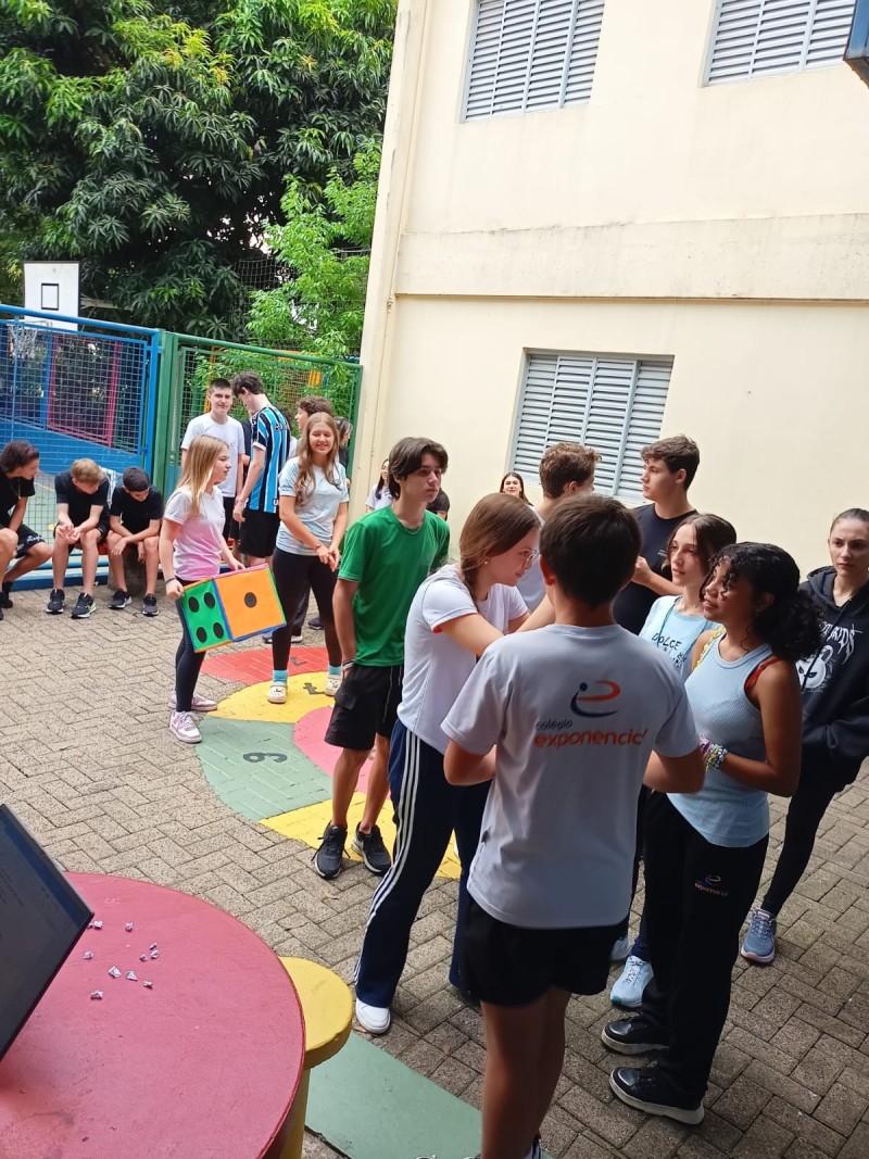Jogo Cósmico com as turmas dos 9º anos, (091 e 092). Professora Rafaela desafiou os estudantes ao jogo de tabuleiro gigante, divididos em duas equipes, eles responderam a questões sobre o Sistema Solar e Ciclo Estrelar✨🪐🌍🌕☄️