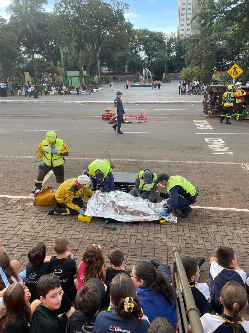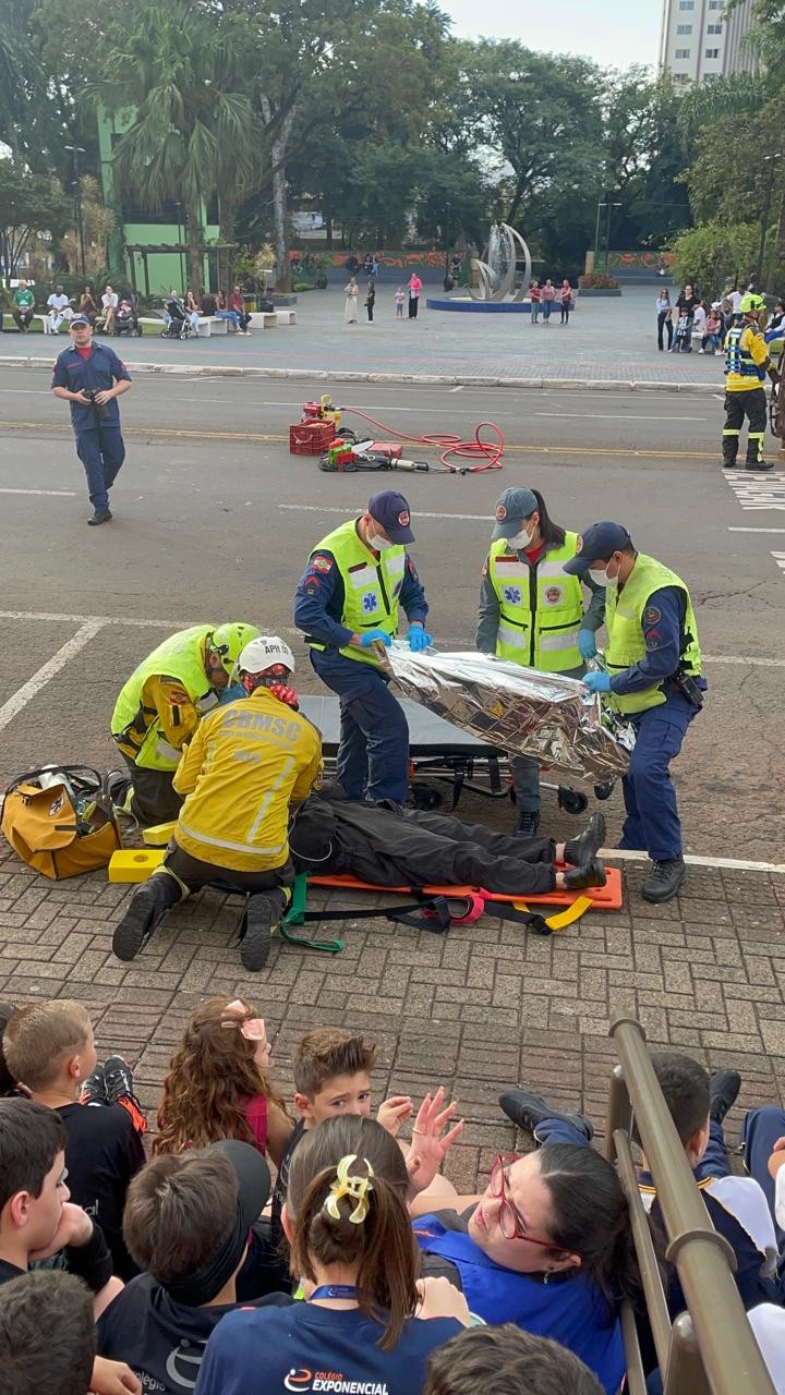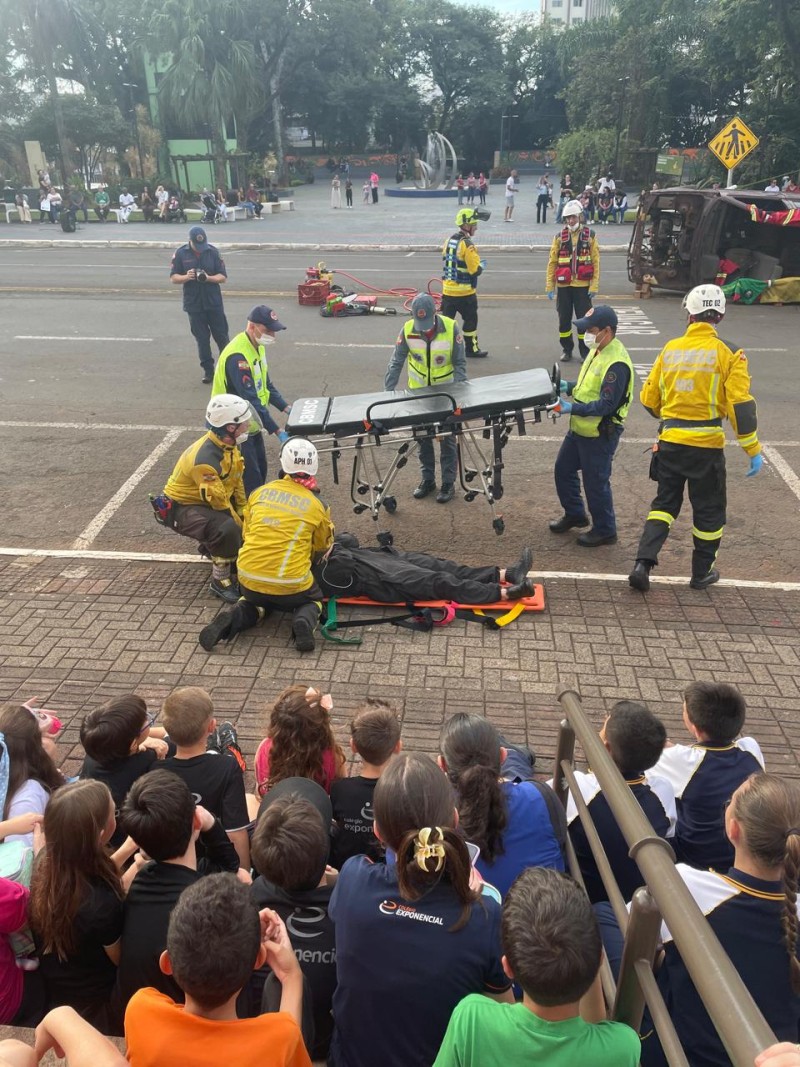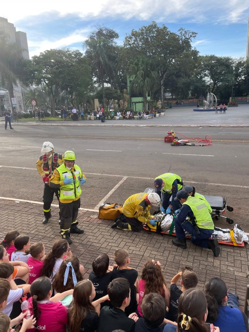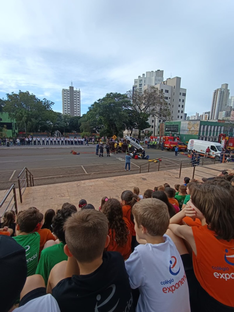 Em 14.04.26 alunos dos 4º e 5º anos do EF1 participaram da Simulação de Resgate Veicular na Praça Coronel Bertaso, no centro de Chapecó. Essa ação aconteceu em comemoração aos 61 anos do Corpo de Bombeiros de Santa Catarina (Chapecó). Houve a participação dos bombeiros, SAMU, helicóptero, entre outros profissionais envolvidos no resgate. 🚁👨🚒 Além de ser uma experiência muito interessante a atividade teve como objetivo aproximar os estudantes da realidade dos serviços de emergência, promovendo a conscientização sobre segurança no trânsito, a valorização da vida e o respeito ao trabalho desses profissionais. Foi um momento muito rico de aprendizagem, despertando a curiosidade, o senso de responsabilidade e o cuidado com o próximo. Educação para o trânsito faz parte da proposta pedagógica do EXPO. Quem aí também gostaria de ter tido uma aula prática assim na época da escola?